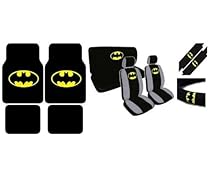 Does the mention of the 'Dark Knight' fill you with excitement? Bring the caped crusader to your car with the Batman Classic Auto Interior Gift Set! The Batman Classic Auto Interior Gift Set includes 1 steering wheel cover, 2 bucket seat covers (2 top and 2 bottom), 2 headrest covers, 1 bench seat cover (1 top and 1 bottom), and 2 seat belt shoulder pads. The simulated leather steering wheel cover provides a soft comfortable grip and fits most standard size steering wheels (14.5 - 15.5 inch.) The steering wheel cover also protects your steering wheel from cracking or peeling. The bucket seat covers are made from 100% Polyester material, and are designed to fit most high and low-backed bucket seats. It can be installed over or under the headrest on vehicles with removable headrests, and some vehicles with armrests may need to have them removed and reinstalled for a semi-custom fit. These front bucket seat covers come with elastic straps and hooks that will snug and! secure it under the seat. The shoulder belt pads provide relief from the stress of the seat belts. The floor mats are heavy duty plush thick pile carpet floor mats with licensed graphic design. Embossed logo makes the design stand out! The backing is made from nipped PVC that prevents sliding and shifting. There is no better way to protect your vehicle's floor while having a bit of fun. The perfect gift for anyone that loves artistic designs and superheroes! Fill your car with the underground savior of Gotham City with the Batman Classic Auto Interior Gift Set today! *WILL NOT FIT SEATS WITH ANY OF THE FOLLOWING: 1. INTEGRATED SEAT BELT. 2. SEATS WITH SIDE AIRBAG. 3. OVERSIZED SEAT (captain seat). 4. SEATS WITH ARMREST (captain seat).* **Note: The seat covers in this set will only fit cars that are passenger sized (compacts, coupes, sedans, etc.) The seat covers will not fit seats in SUVs or Trucks.**